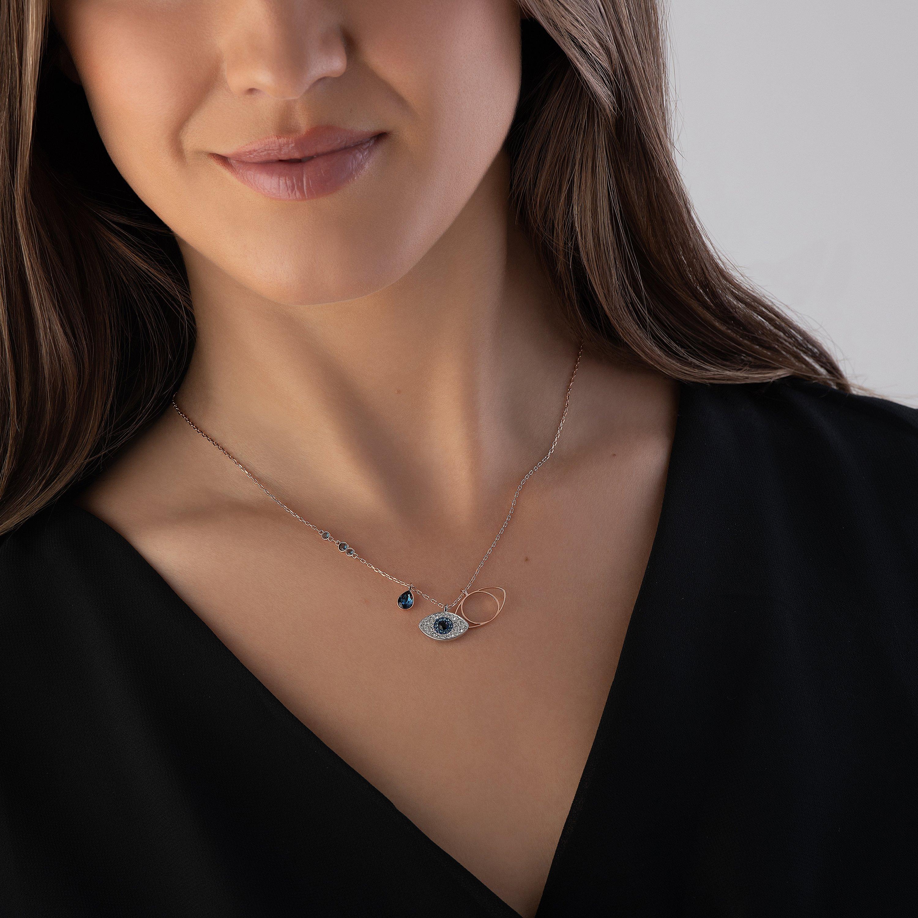 REVIEW SWAROVSKI Crystal Duo Evil Eye Rose Gold Plated Necklace ITEM CODE 5172560 Very well made.