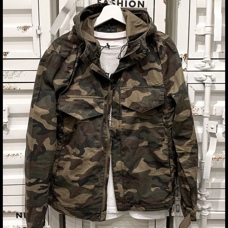 Military jacket Heavy Vintage Washed Fried Street Hooded Zipper Very well made.