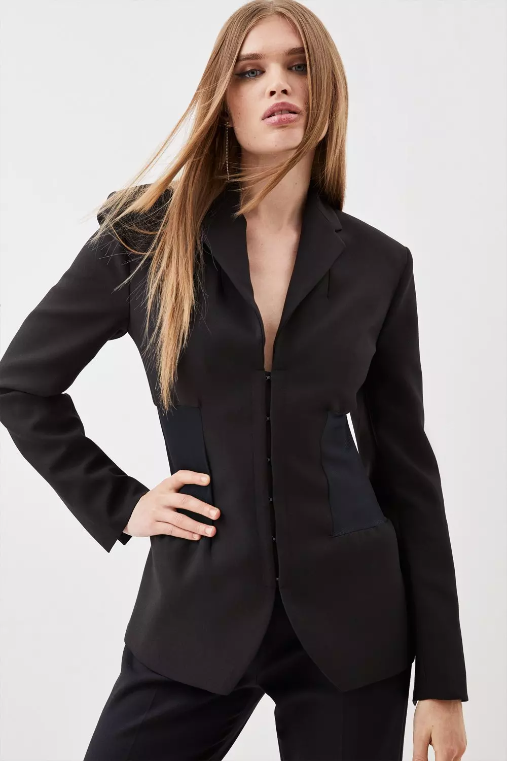 Compact Stretch Tailored Contrast Panel Detail Waist Blazer Karen Millen Very well made.