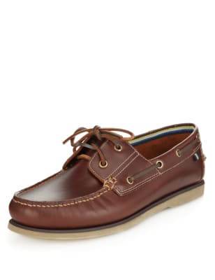 Leather Lace Up Boat Shoes Blue Harbour M S Very well made.