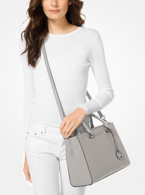 NWT Michael Kors Kellen Saffiano Leather Satchel Handbag ACORN BLOSSOM PEARLGREY Very well made.