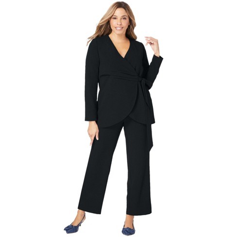 Jessica London Women s Plus Size Faux Wrap Pantsuit 16 W Black Very well made.