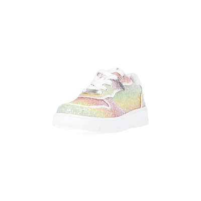 Girls Pink Rainbow Glitter lace up Trainers River Island Very well made.