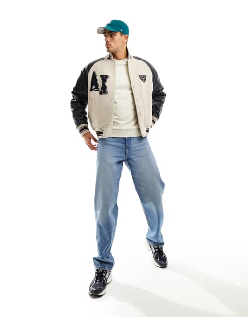 Armani Exchange logo bomber jacket in light beige and black ASOS Very well made.