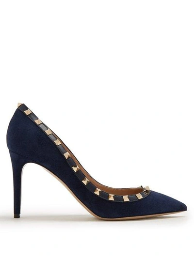 Valentino Garavani Rockstud Point toe Suede Pumps In Navy ModeSens Very well made.