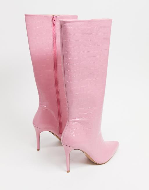 ASOS DESIGN Wide Fit Claudia knee high boots in pink croc ASOS Very well made.
