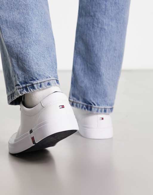 Tommy Hilfiger modern vulc leather trainer in white with flag Very well made.