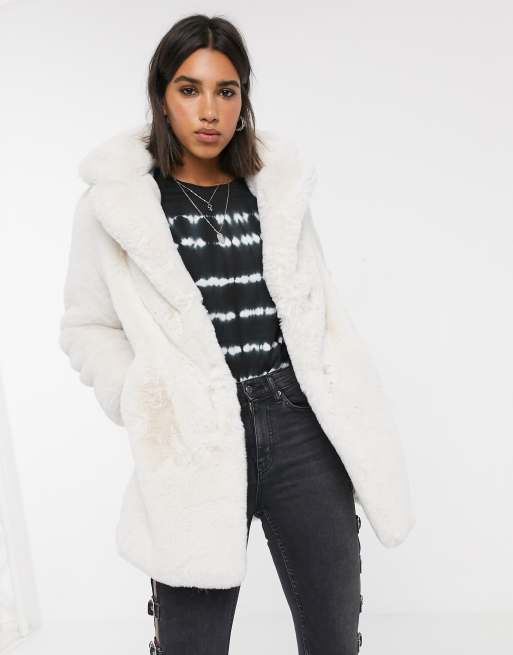 Bershka faux fur longline coat in ecru Very well made.