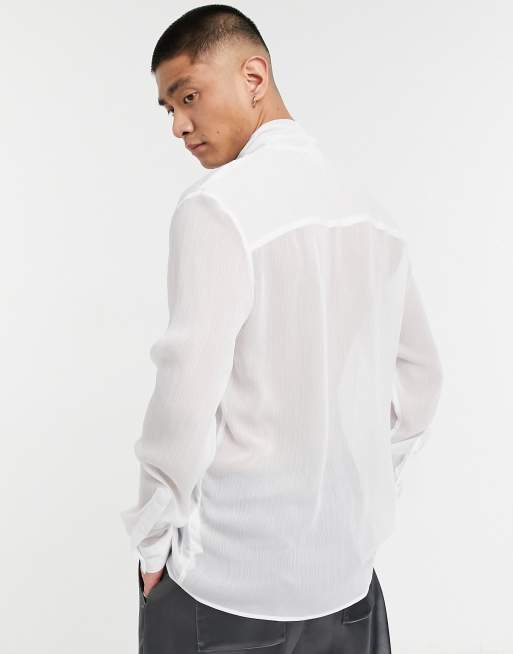 ASOS DESIGN regular fit sheer pussybow shirt in white Very well made.